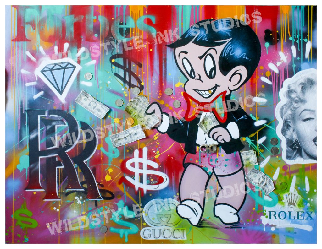 Richie Richness 2018 – Spray Paint, Acrylic, Mixed Media on Wood 60×46